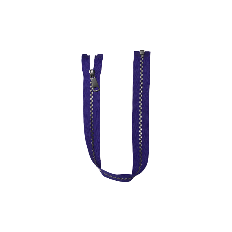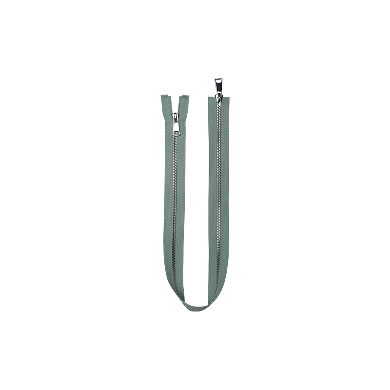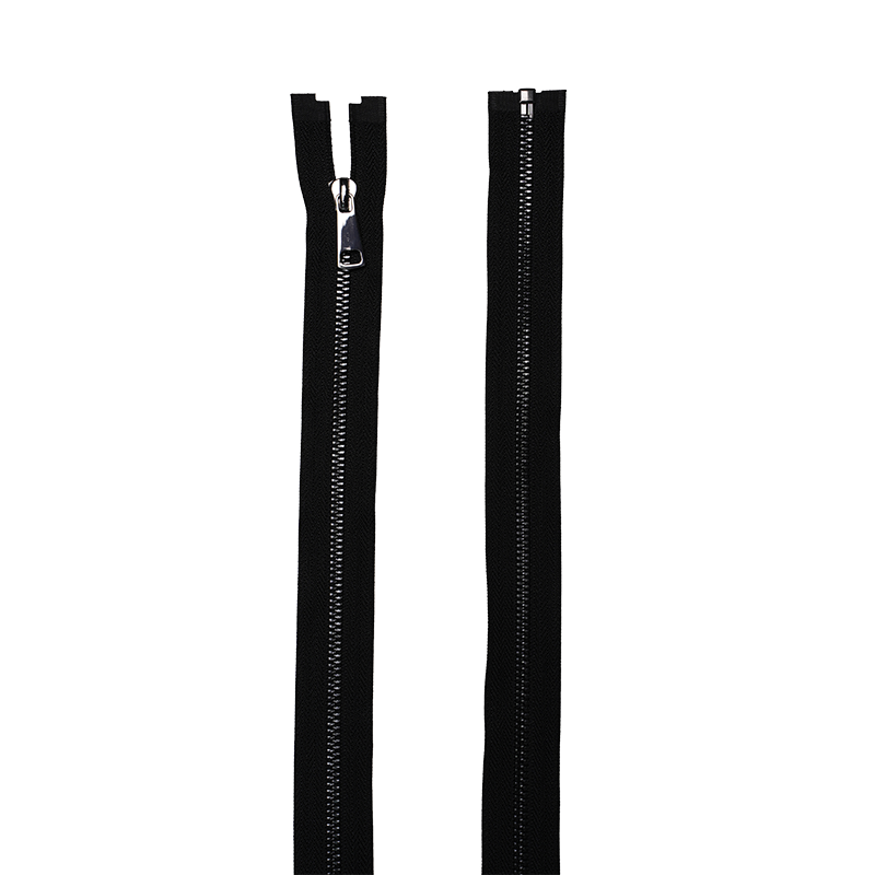 Zip logam ialah zip yang diperbuat daripada logam yang digunakan untuk menyambung dan menutup dua item, seperti pakaian, beg, kasut, dll. Zip logam biasanya lebih kuat dan lebih tahan lama daripada zip plastik atau nilon. Zip logam biasanya diperbuat daripada tembaga, aloi zink, keluli tahan karat dan bahan logam lain. Logam ini mempunyai ciri kekuatan tinggi dan rintangan kakisan yang baik, menjadikan ritsleting logam digunakan secara meluas dalam beberapa aplikasi yang memerlukan keliatan yang lebih kuat. Di samping itu, zip logam sering digunakan dalam beberapa produk mewah dan bergaya kerana penampilan bahan logam lebih mulia. Penarik zip logam biasanya diperbuat daripada logam dan boleh dilekatkan dengan reka bentuk atau hiasan khas untuk meningkatkan estetika produk. Bahagian tali zip logam terdiri daripada pautan logam, yang boleh dibuka dan ditutup dengan menggerakkan gelangsar. Gigi zip logam biasa, gigi ritsleting logam khas seperti gigi Y, gigi jagung, gigi gaya Eropah, gigi mata dua. Pelbagai jenis, warna gigi logam dan warna gelangsar boleh disesuaikan, sesuai untuk pakaian kulit, jaket, jaket bawah dan pelbagai produk bagasi.